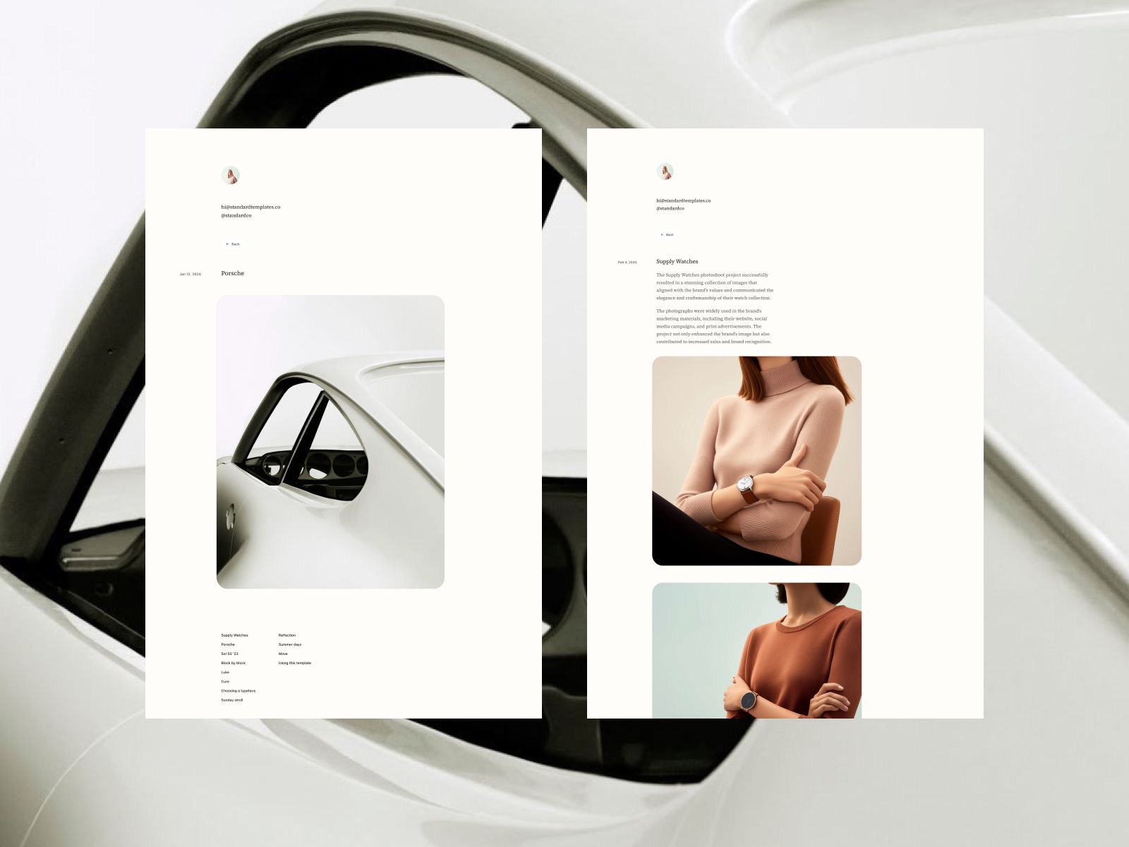 Std BureauBureau is a Premium Framer template from Standard Templates for art, design & photography blogs. Perfect for launching a blog, portfolio of design journal. All content is CMS managed for easy of updatingFramer components to surface preferencesDark & Light mode themes ✨ Live previewℹ Usage guideFeatures 8 ready to use pagesIndex page with all postsSpecific category pages (Work, Photography, Writing, Inspiration, About, Archive)Individual post pagesHorizontal or vertical galleryLatest Framer features includedGlobal color & typography stylesFree updates for life SupportPlease email [email protected] for any help.You'll need a free Framer account to publish this template.